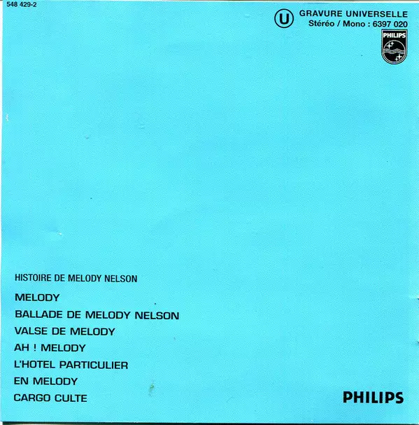 Serge Gainsbourg: Histoire De Melody Nelson versión en CD en remasterizado edición. Esta edición en concreto se lanzó en Francia en la editorial Philips en colaboración con Mercury el día 6. noviembre 2001.