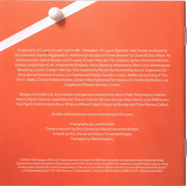 | Arranged By [Strings Arranged By], Conductor [Strings Conducted By] Simon Hale | Backing Vocals Ed Drewett, Nathaniel Warner | Cello Chris Worsey, Ian Burdge | Electric Piano [Rhodes], Bass Reuben James | Mastered By Matt Colton | Mixed By Nathan Boddy, SG Lewis | Producer, Vocals, Synth, Instrumentation By [All Other Instrumentation By], Programmed By SG Lewis | Viola Bruce White, Reiad Chibah | Violin Everton Nelson, Lucy Wilkins, Natalia Bonner, Patrick Kiernan, Richard George, Steve Morris, Tom Pigott-Smith, Warren Zielinski | Written-By Ed Drewett, Jay Mooncie, Nathaniel Warner, Reuben James, Samuel George Lewis | |||