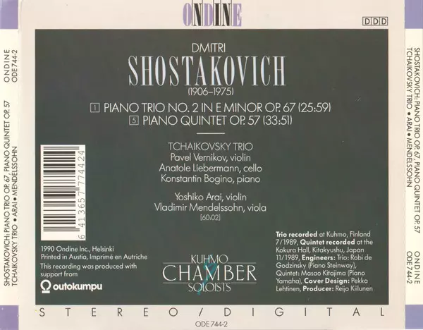 | Artista | Dmitri Shostakovich | Vladimir Mendelssohn | Yoshiko Arai | Kuhmo Chamber Soloists |