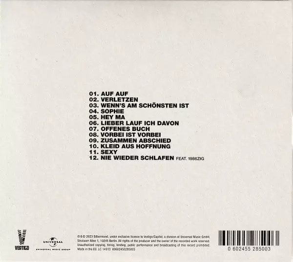 Silbermond: Auf Auf DIGI versión en CD en digisleeve edición. Esta edición en concreto se lanzó en Alemania en la editorial Vertigo Berlin el día 2. junio 2023. Álbum abarca todos los géneros Rock, Pop y Pop Rock.
