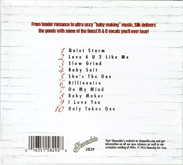 Silk: Quiet Storm versión en CD en estándar edición. Esta edición en concreto se lanzó en EE.UU. en la editorial Shanachie el día 29. abril 2016. Álbum abarca todos los géneros Funk / Soul y Contemporary R&B.