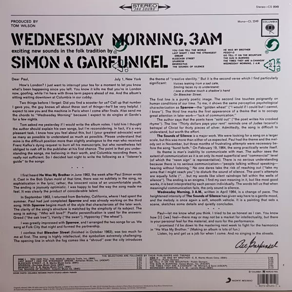 The duo recorded their first album as Simon & Garfunkel in 1964 and produced a record that sounds different from the music they released in later years. Between the release of "Wednesday Morning, 3 A.M." and their second album, Simon & Garfunkel scored a big folk-rock hit with "The Sound Of Silence". This album contains the original acoustic ver...