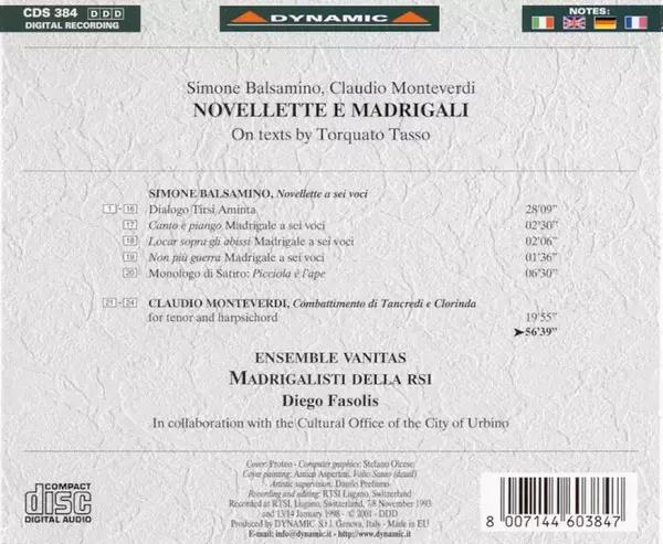 | Artista | Claudio Monteverdi | Diego Fasolis | Ensemble Vanitas | Simone Balsamino | Madrigalisti Della RSI |