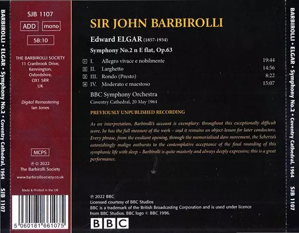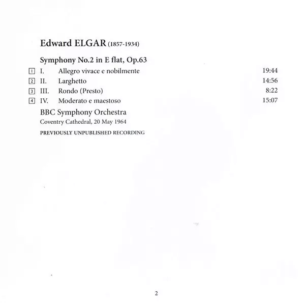 CD Elgar: Symphony No.2 (Coventry Cathedral, 20 May 1964)