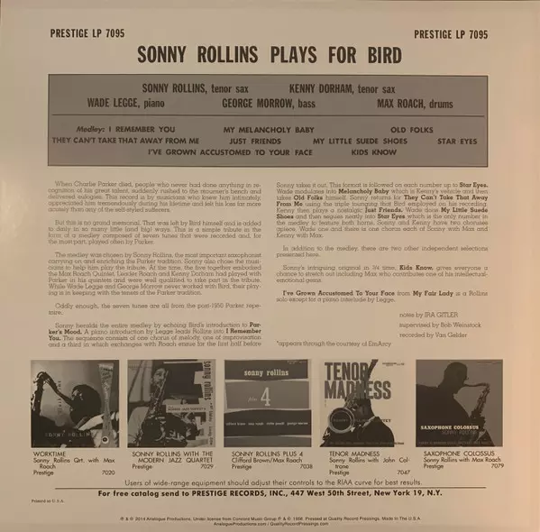 | Título | Rollins Plays For Bird |
