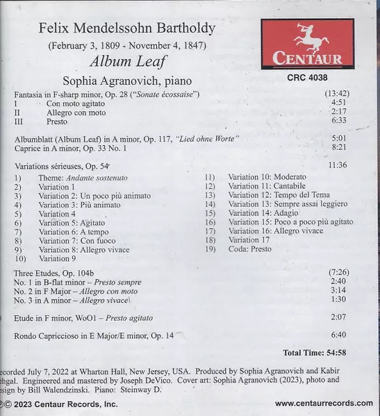 | Título | Album Leaf: Piano Works By Felix Mendelssohn |
