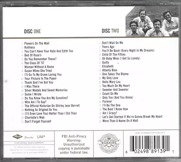 The Statler Brothers: Gold versión en 2CD en estándar edición. Esta edición en concreto se lanzó en EE.UU. en la editorial Chronicles en colaboración con UMe y Mercury el día 17. febrero 2022. Álbum abarca todos los géneros Folk, World, & Country y Country. Rmst.