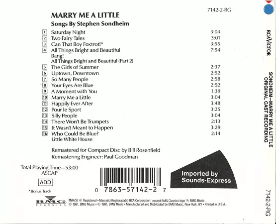 | Título | Marry Me A Little (Original Cast Recording) |
