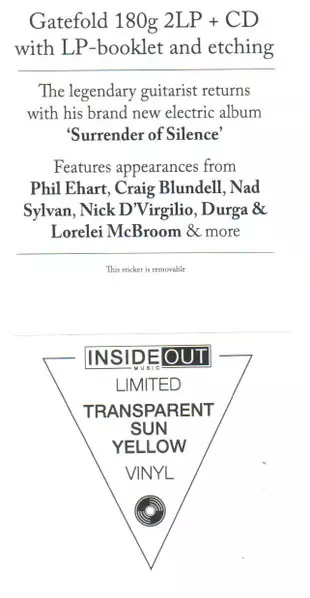 | Más información en | 180g Coloured Yellow Sun Transparent Vinyl Limited Edition |