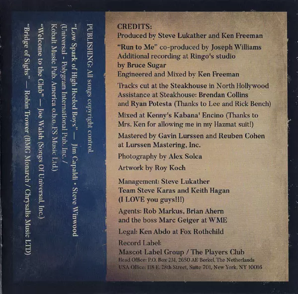 Steve Lukather zanechal v průběhu pěti desetiletí nesmazatelnou stopu v popkultuře. Kromě toho, že byl jediným členem skupiny Toto, který si nikdy nedal pauzu, se objevil na tisících alb jako session hudebník. Nadále je kapelníkem skupiny Toto, členem Ringova All-Starr Bandu a sólovým umělcem vystupujícím s různými soubory. Na novém sólovém albu...