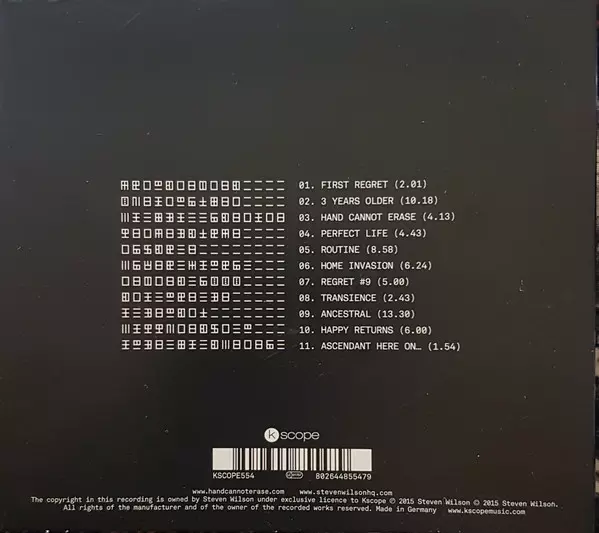 Reissue of the fourth studio album "Hand. Can't. Erase." Steven Wilson from 2015. Released in a newly remastered deluxe edition as a CD & Blu-ray version in a digipack. The CD contains the entire album "Hand-Cannot. Erase"; the Blu-ray also contains the complete album, but in a 5.1 (96/24 stereo LPCM) mix for all audiophile fans. In addition, th...