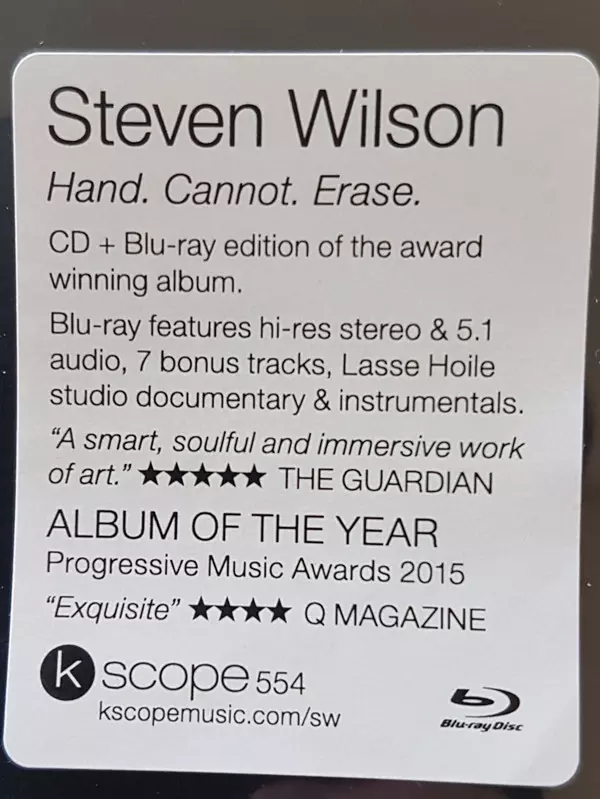 Steven Wilson: Hand. Cannot. Erase. versión en CD/Blu-ray en deluxe edición. Esta edición en concreto se lanzó en Europa y Reino Unido en la editorial Kscope el día 1. octubre 2021.