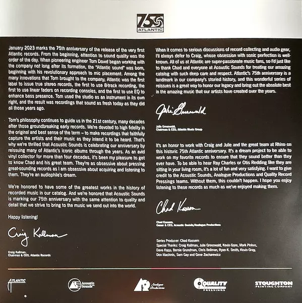 | Editorial | Analogue Productions | Atlantic |