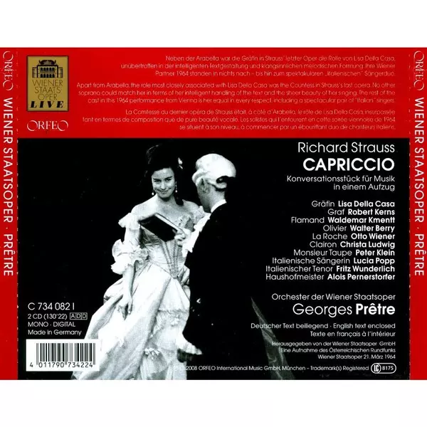 | Artista | Richard Strauss | Christa Ludwig | Walter Berry | Georges Prêtre | Fritz Wunderlich | Waldemar Kmentt | Lucia Popp | Lisa Della Casa | Robert Kerns | Otto Wiener |