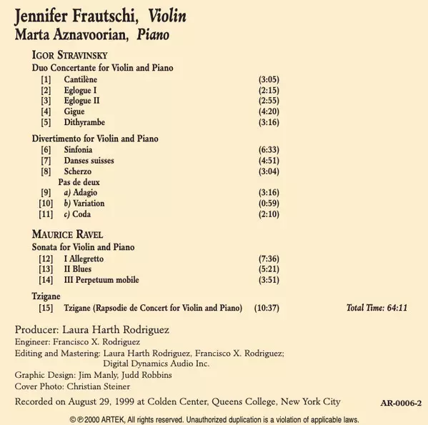 | Artista | Maurice Ravel | Igor Stravinsky | Jennifer Frautschi | Marta Aznavoorian |