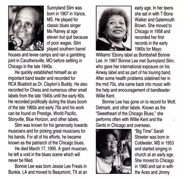 Bass Nick Holt | Drums Mickey Martin (3) | Guitar Magic Slim, Morris Holt | Piano Sunnyland Slim | Vocals Sarah Streeter | Written-By Sarah Streeter