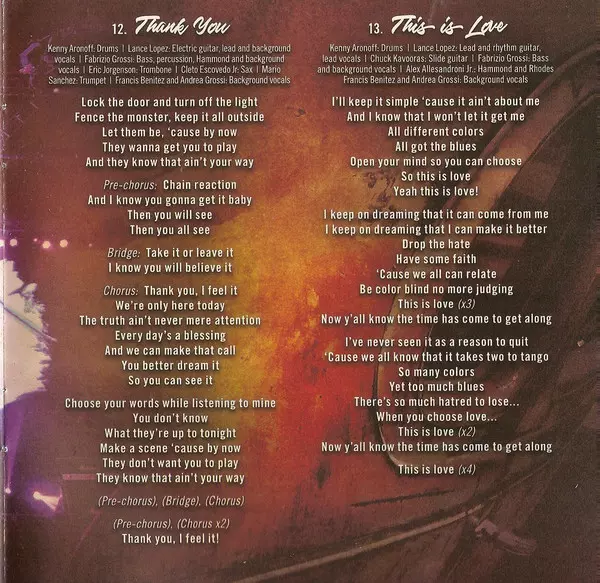 Backing Vocals [Background Vocals] Andrea Grossi (2), Francis Benitez | Bass, Percussion, Backing Vocals [Background Vocals] Fabrizio Grossi | Drums Kenny Aronoff | Electric Guitar, Lead Vocals, Backing Vocals [Background Vocals] Lance Lopez | Electric Organ [Hammond] Alex Alessandroni | Harmonica Chris Hansen (22) | Written-By Fabrizio Grossi