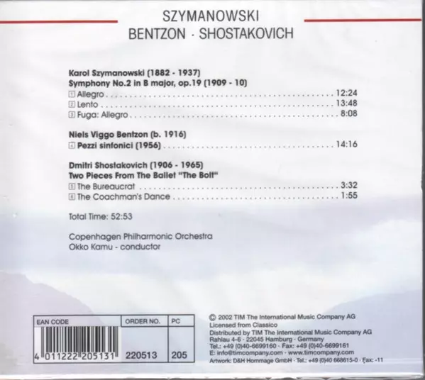 | Título | Szymanowski - Bentzon - Shostakovich |