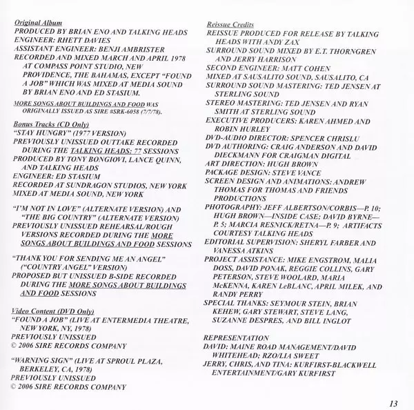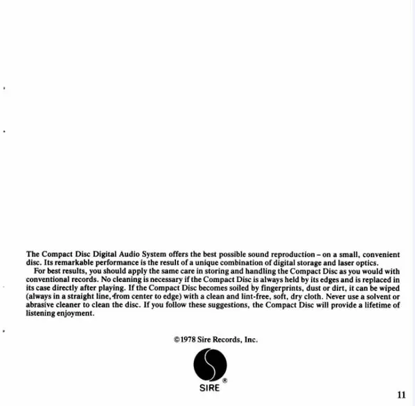 | Editorial | Sire | Warner Bros. Records | Rhino Records (2) | Warner Strategic Marketing |