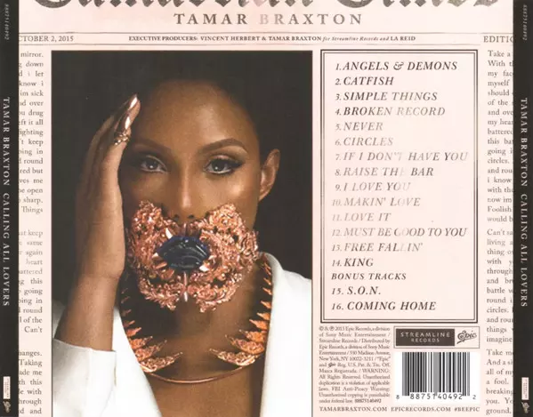 Tamar: Calling All Lovers DLX versión en CD en deluxe edición. Esta edición en concreto se lanzó en EE.UU. en la editorial Streamline Records en colaboración con Epic el día 2. octubre 2015. Álbum abarca todos los géneros Funk / Soul, Hip Hop, Rhythm & Blues y Contemporary R&B.
