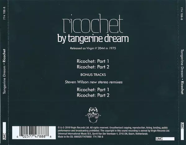 Ricochet is an album by the band Tangerine Dream, released in 1975. The album includes the tracks "Ricochet", "Cloudburst Flight" and "Crystal Lake", which feature the band's signature synth sound. Ricochet was the group's first album to chart on the Billboard 200 in the United States, at number 191.
