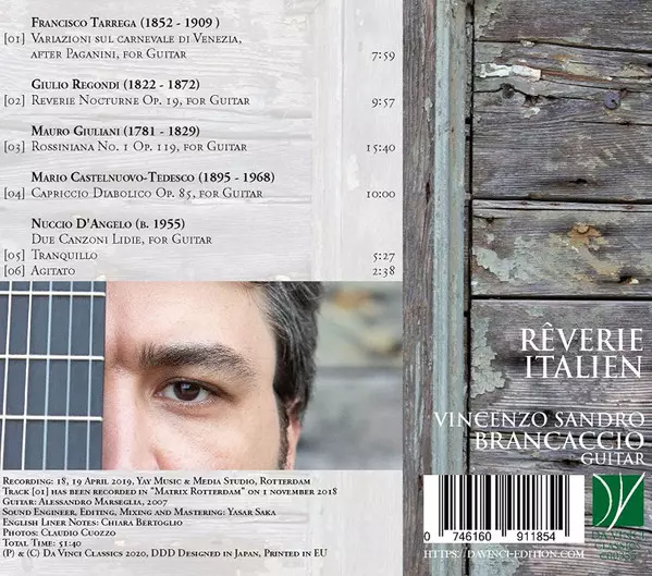 | Artista | Francisco Tárrega | Mario Castelnuovo Tedesco | Mauro Giuliani | Giulio Regondi | Vincenzo Sandro Brancaccio | Nuccio D'Angelo |