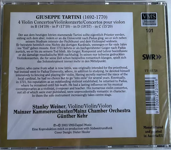 | Artista | Giuseppe Tartini | Mainzer Kammerorchester | Günter Kehr | Stanley Weiner |