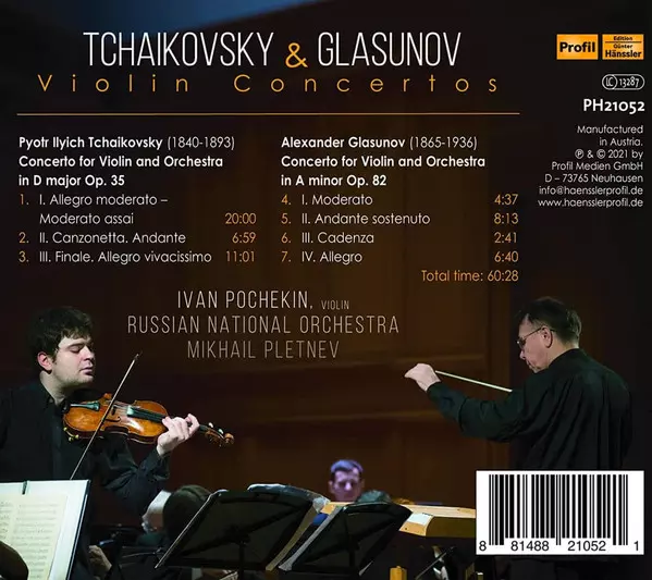 | Artista | Pyotr Ilyich Tchaikovsky | Russian National Orchestra | Mikhail Pletnev | Alexander Glazunov | Ivan Pochekin |