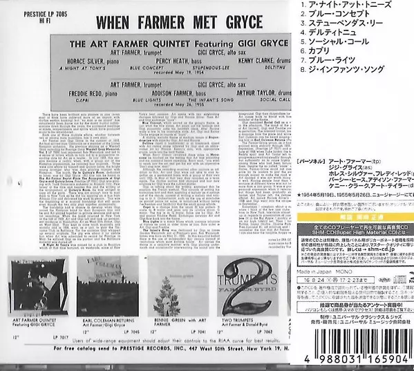 | Artista | Gigi Gryce | Art Farmer Quintet |