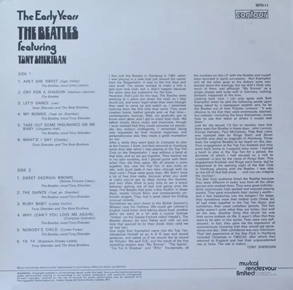 | Vocals Tony Sheridan | Written-By Bill Crompton, Tony Sheridan | |||