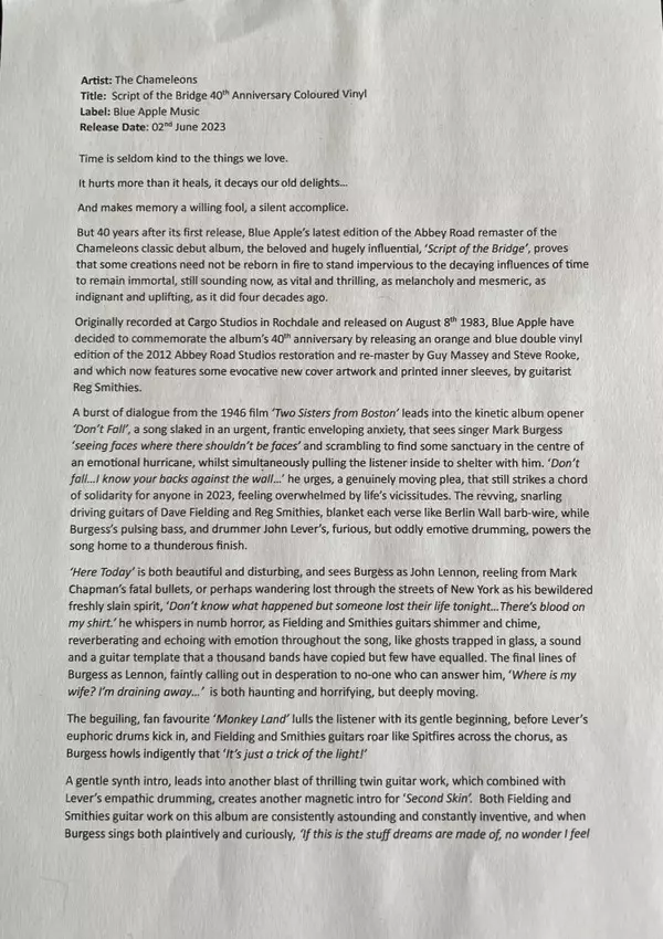 | Artista | The Chameleons |