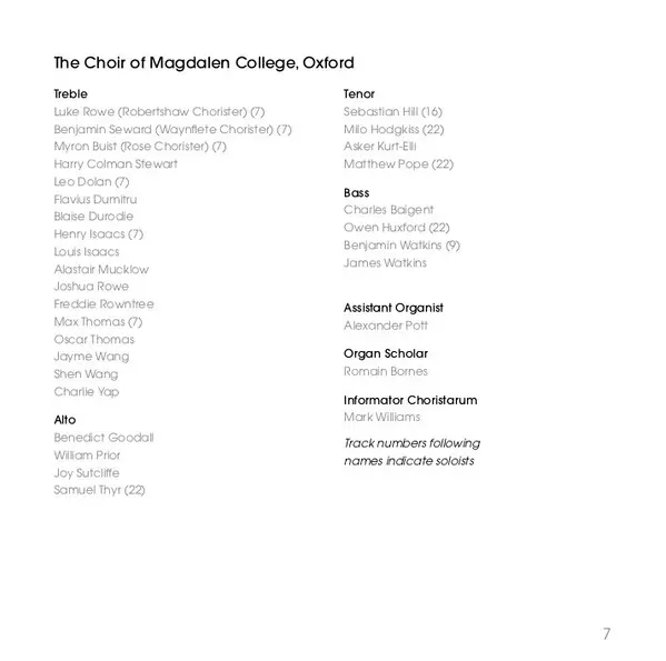 Magdalen College Choir Oxford is a renowned choir associated with Magdalen College, part of the University of Oxford in England. The choir is composed of academically selected choristers and is known for its rich choral tradition that dates back centuries. The choir participates in...