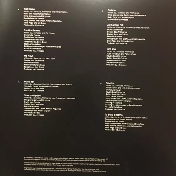 Saxophone Tom Chant | Written-By, Double Bass Phil France | Written-By, Guitar Stuart McCallum | Written-By, Vocals Patrick Watson