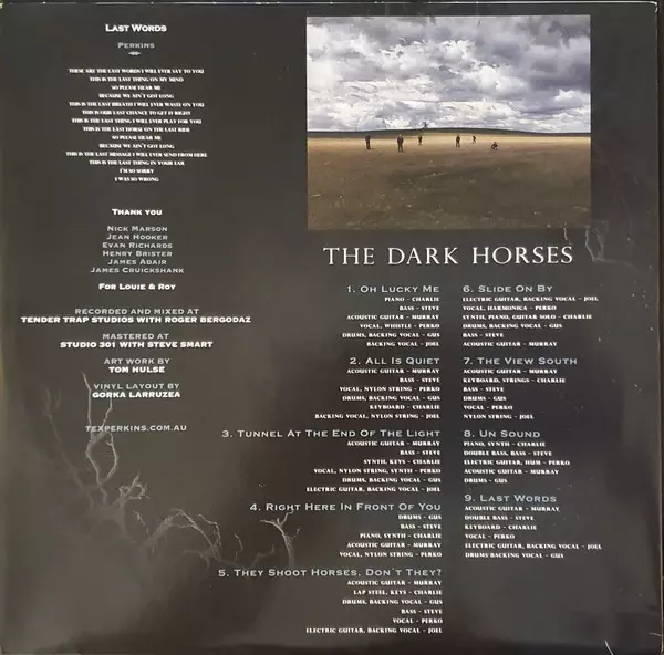 The Dark Horses are an Australian band which evolved out of Tex Perkins solo albums and became a group in it's own right with the release of the 2003 album 'Sweet Nothing'.