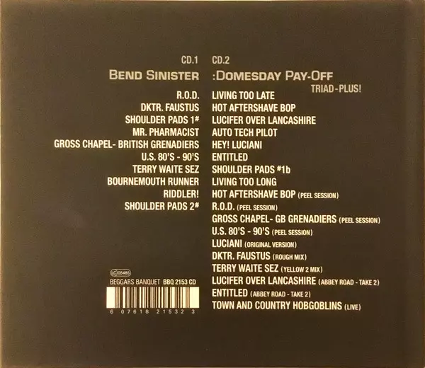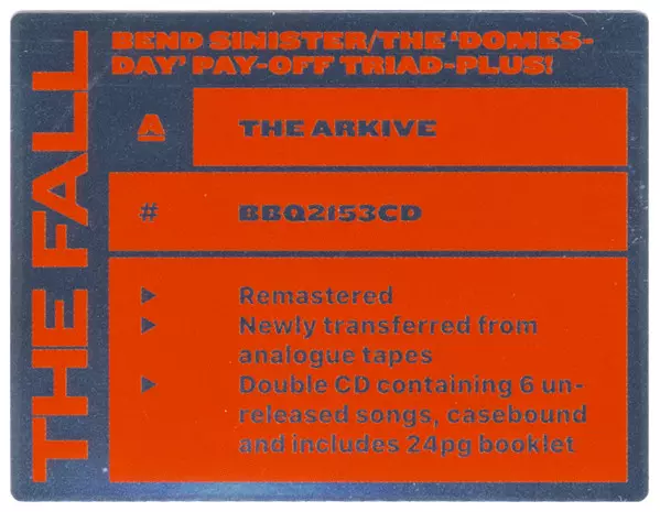 The Fall: Bend Sinister / The :Domesday Pay-Off Triad-Plus! versión en 2CD en remasterizado edición. Esta edición en concreto se lanzó en Reino Unido en la editorial Beggars Banquet en colaboración con Beggars Arkive el día 15. marzo 2019.