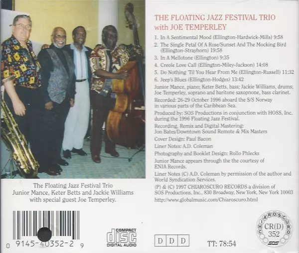 | Artista | Junior Mance | Joe Temperley | Jackie Williams | The Floating Jazz Festival Trio | Keter Betts |