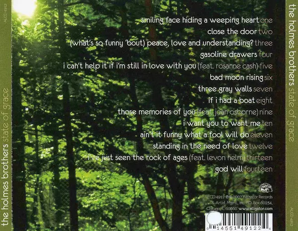 The Holmes Brothers: State Of Grace versión en CD en estándar edición. Esta edición en concreto se lanzó en EE.UU. en la editorial Alligator Records el día 16. enero 2007. Álbum puede clasificarse como género Blues. Clear Tray.