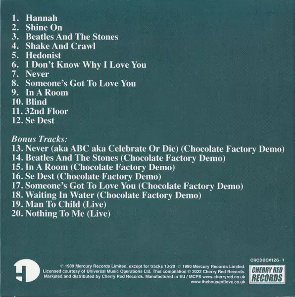 The House Of Love: Burn Down The World - The Fontana Years 1989-1993 versión en 8CD/Caja en estándar edición. Esta edición en concreto se lanzó en Reino Unido en la editorial Cherry Red el día 6. octubre 2023. Álbum abarca todos los géneros Rock, Indie Rock, Shoegaze, Ethereal y Jangle Pop.
