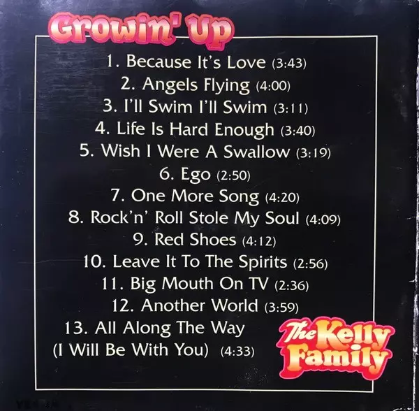 The Kelly Family: Growin' Up versión en CD en estándar edición. Esta edición en concreto se lanzó en Europa en la editorial Kel-Life del año 1997.