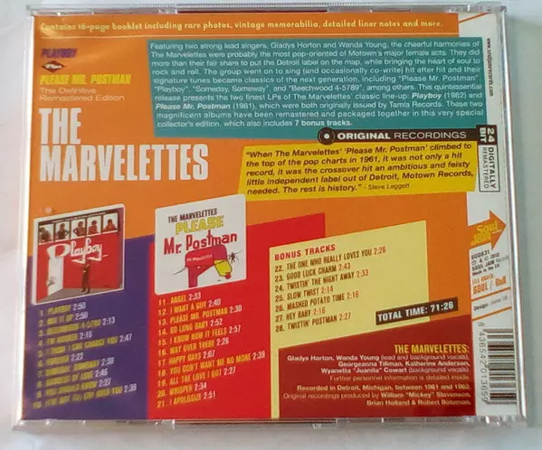 The Marvelettes: Playboy Plus Please Mr. Postman versión en CD en remasterizado edición. Esta edición en concreto se lanzó en Europa en la editorial Soul Jam Records el día 25. junio 2013. Álbum abarca todos los géneros Funk / Soul y Rhythm & Blues.
