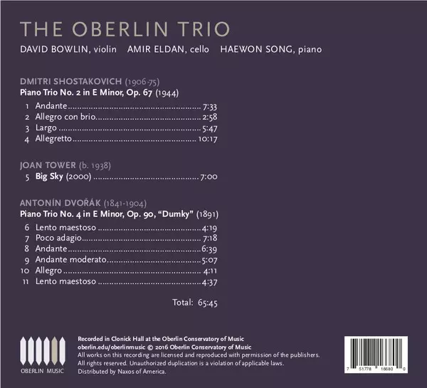 | Artista | Antonín Dvořák | Dmitri Shostakovich | Joan Tower | The Oberlin Trio |