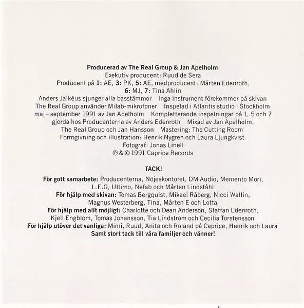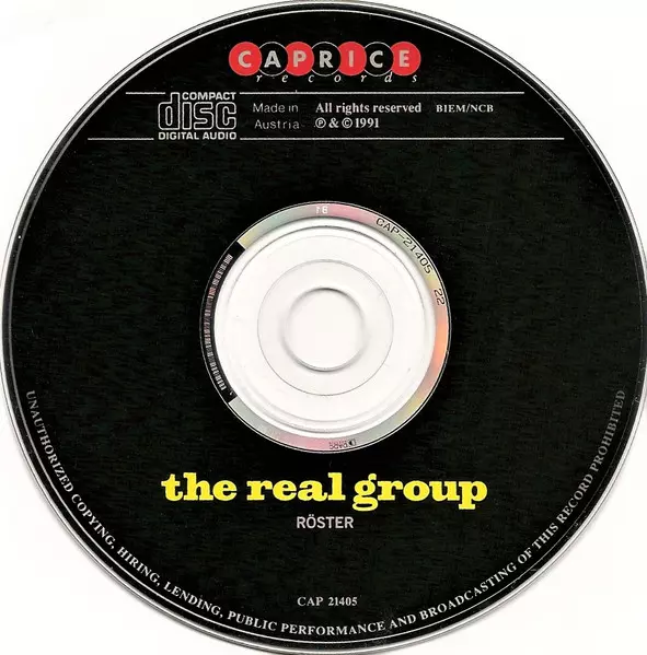 The Real Group: Röster versión en CD en estándar edición. Esta edición en concreto se lanzó en Suecia en la editorial Caprice Records el día 27. septiembre 1994. Álbum abarca todos los géneros Pop, Jazz y Vocal.