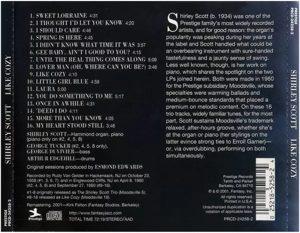 | Artista | Shirley Scott | Shirley Scott Trio |