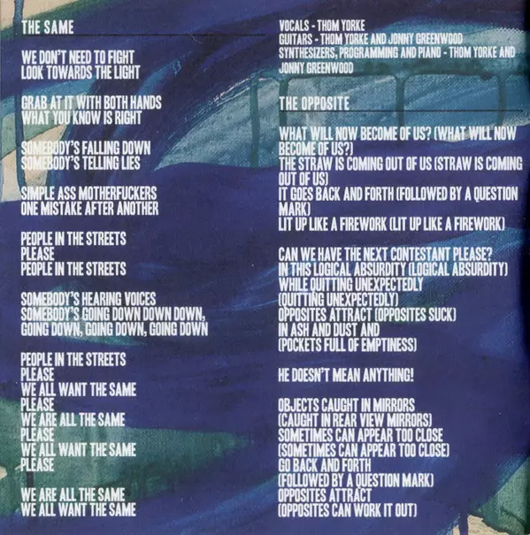 Guitar [Guitars], Synthesizer [Synthesizers], Programmed By [Programming], Piano Jonny Greenwood, Thom Yorke