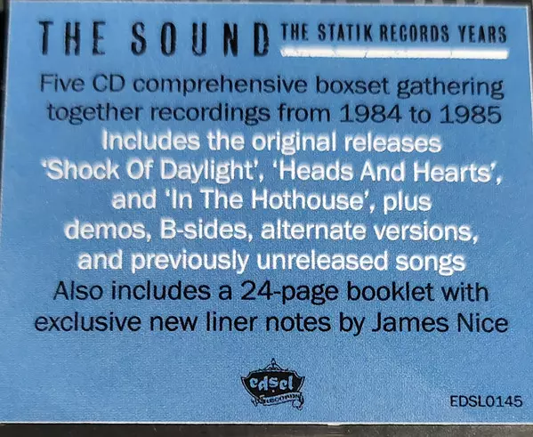 The Sound: The Statik Records Years versión en 5CD en estándar edición. Esta edición en concreto se lanzó en Reino Unido en la editorial Edsel Records el día 21. julio 2023. Álbum abarca todos los géneros Rock y Post-Punk.