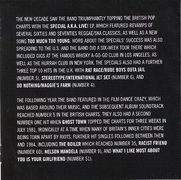 The Specials, also known as The Special AKA, are an influential British ska revival band that formed in Coventry, England, in 1977. They are known for their distinctive fusion of traditional ska music with punk rock energy and a sharp political edge. The band was a key player in th...