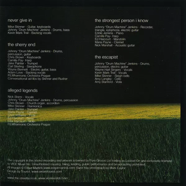 Banjo Ed Harcourt | Clarinet Maria Payne (2) | Drums, Percussion Johnny Jenkins (2) | Flute Chris Brown (17) | Harmonica Mike Skinner | Orchestra FILMharmonic Orchestra | Organ [Church Organ], Accordion Chris Brown (17) | Trumpet Jake Painter | Violin Gita Harcourt | Vocals Nick Shirm