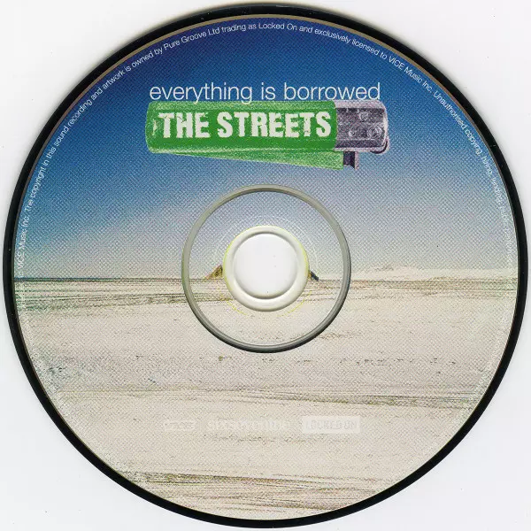 The Streets: Everything Is Borrowed versión en CD en estándar edición. Esta edición en concreto se lanzó en EE.UU. en la editorial Vice Records en colaboración con 679 y Locked On el día 7. octubre 2008.