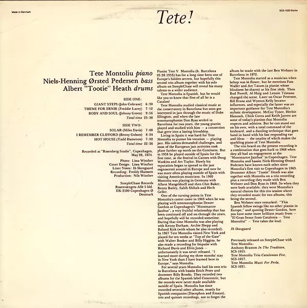 | Artista | Tete Montoliu Trio |