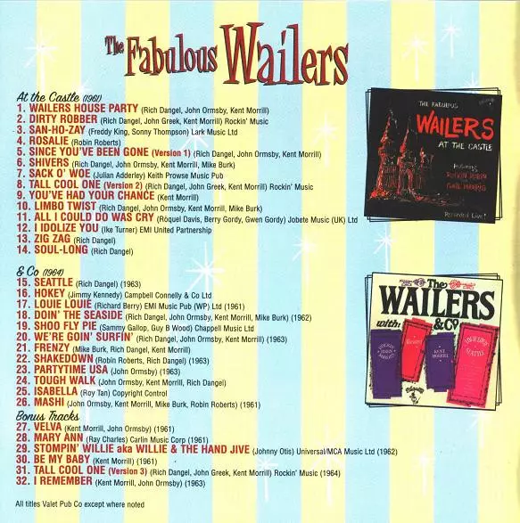The Wailers: At The Castle / & Co versión en CD en estándar edición. Esta edición en concreto se lanzó en Reino Unido en la editorial Big Beat Records el día 29. mayo 2003. Álbum abarca todos los géneros Rock, Garage Rock, Rock & Roll y Surf.